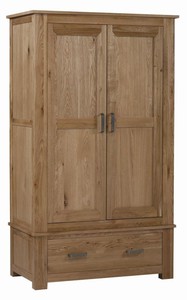 Ercol Teramo 3 Door Wardrobe Pale oak Clear matt finish Two deep dovetail jointed drawers Two large compartments contain wooden hanging rail and adjustable storage shelf Smaller compartment has one wooden hanging rail ... Fetch Doc